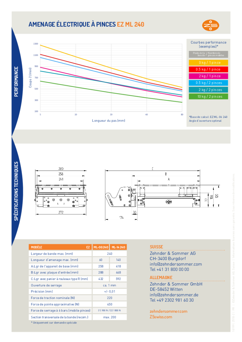 - Options de longueurs d'avance 60, 100, 140 mm